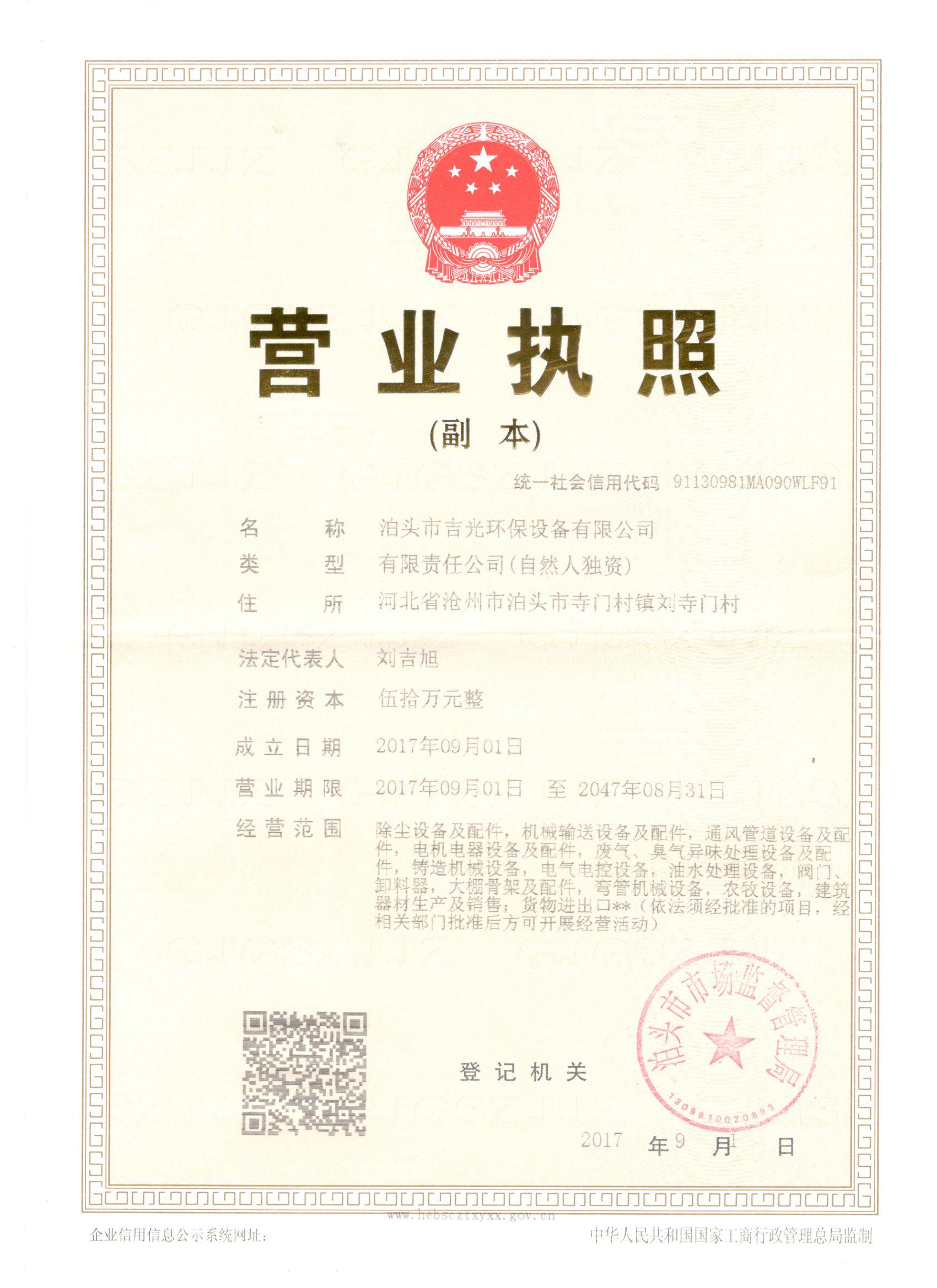 泊頭市吉光環(huán)保設(shè)備有限公司是一家維修和銷售為一體的技術(shù)企業(yè)。秉承“予天空于蔚藍(lán),還世界于清新”的經(jīng)營宗旨,使我們的家園水清,地綠,天藍(lán),空氣清新而奮斗。